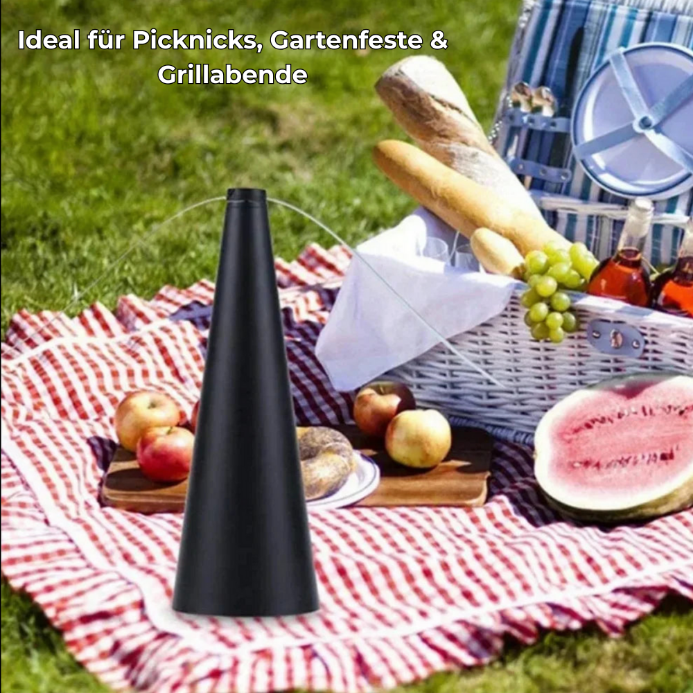 Du willst ein entspanntes Picknick, ein leckeres Abendessen im Garten oder einfach in Ruhe dein Frühstück genießen – doch surrende Fliegen machen dir jedes Mal einen Strich durch die Rechnung. Studien zeigen: Allein in Europa stören Fluginsekten bei über 80 % aller Outdoor-Mahlzeiten. Und herkömmliche Lösungen wie Sprays oder Abdeckhauben? Entweder ungesund, umständlich oder unpraktisch.